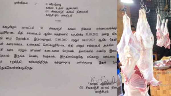 எனவே செங்கழுநீரோடை வீதி மற்றும் சங்கரமடம் அருகில் உள்ள இறைச்சி கடை மற்றும் பிரியாணி கடைகளை மேற்கண்ட தினங்களில் எவ்வித இடையூறும் ஏற்படுத்தாமல் இருக்க வேண்டி மேற்கண்ட இருதினங்களுக்கு தங்களது கடையை மூடி விநாயகர் சதுர்த்தி ஊர்வலத்திற்கு ஒத்துழைப்பு அளிக்குமாறு காவல்துறை சார்பில் கேட்டு கொள்ளப்படுகிறது' என கூறப்பட்டுள்ளது.