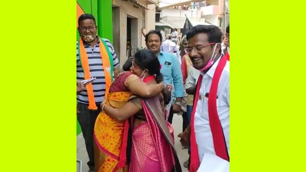 ப்பா.. சூப்பர்ல.. நடுத்தெருவில் கட்டிப்பிடித்து கொண்ட "பாஜக - திமுக" வேட்பாளர்கள்.. சபாஷ் காஞ்சி