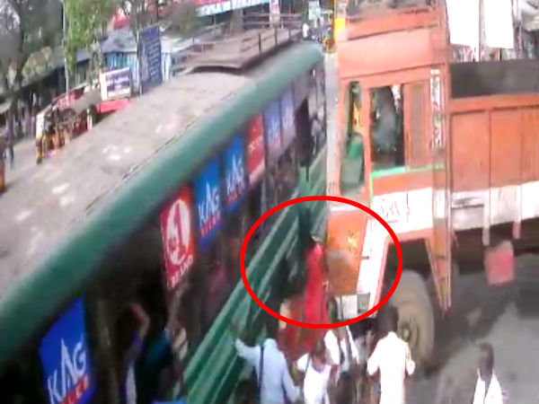 காஞ்சிபுரம்: லாரி, பஸ்சுக்கு நடுவே நசுங்கி உயிரிழந்த ஆசிரியையின் பதறவைக்கும் வீடியோ ஒன்று தற்போது வெளியாகி உள்ளது.