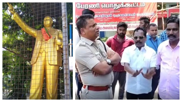 அம்பேத்கர் சிலைக்கு ‘காவி' துண்டு! சர்ச்சையை தூண்டி விட்ட சமூக விரோதிகள்! வீறு கொண்டெழுந்த விசிக!