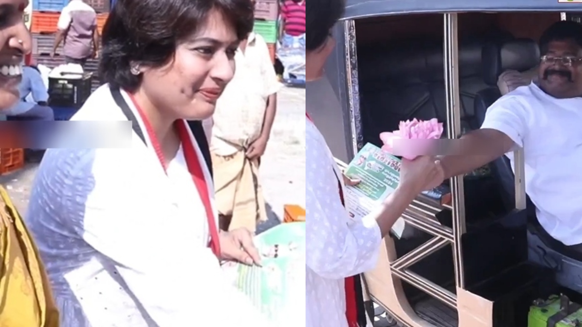 கன்னியாகுமரி: அதிமுகவுக்கு ஓட்டு கேட்க சென்ற காயத்ரி ரகுராமிடம் ஆட்டோ டிரைவர் ஒருவர் தாமரை கொடுத்த சுவாரஸ்ய சம்பவம் நடந்துள்ளது.