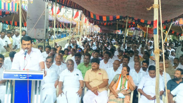 போராட்ட மேடையில் மையமாக அமர்ந்திருந்த செந்தில்பாலாஜியை சந்தித்து ஏதோ உதவிக் கேட்டு சென்ற திமுக மூத்த தொண்டர் ஒருவரை அவர் ஏறெடுத்துக் கூட பார்க்கவில்லை. அதற்குள் ஓடிவந்த செந்தில்பாலாஜியின் அடிபொடிகள் இரண்டு பேர் அந்த முதியவரின் இரு கைகளையும் பிடித்து இழுத்துச்சென்றனர்.