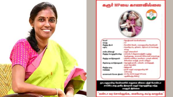 கரூர்: கரூர் தொகுதி எம்பி ஜோதிமணியை காணவில்லை என அப்பகுதி மக்கள் ஒட்டிய போஸ்டரால் பெரும் பரபரப்பு ஏற்பட்டுள்ளது.