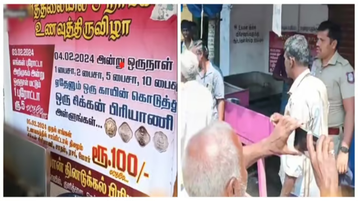 சிக்கன் பிரியாணி: அதில், நேற்றைய தினம் ஞாயிற்றுக்கிழமையான ஒருநாள் மட்டும் 1 பைசா, 2 பைசா, 5 பைசா, 10 பைசாக்களில் ஏதேனும் ஒரு காசை கொடுத்தால் ஒரு சிக்கன் பிரியாணி வழங்கப்படும் என அறிவிக்கப்பட்டது.. இதுதொடர்பான போஸ்டர்களும் ஊர் முழுக்க ஒட்டப்பட்டது.