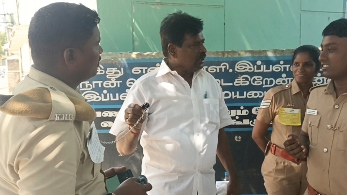 “விசில் ஒரு கட்சியின் சின்னம். வாக்குச்சாவடியில் அதனை பயன்படுத்தக்கூடாது அதனை உடனே அகற்ற வேண்டும்” என வாக்குவாதத்தில் ஈடுபட்டதால் அப்பகுதியில் சிறிது நேரம் பரபரப்பு ஏற்பட்டது. இதையடுத்து, உடன் பணியாற்றிய காவலர் விசிலை எடுத்து விடுங்கள் எனக் கூறிய நிலையில் அங்கிருந்த திமுகவினர் கிளம்பிச் சென்றனர்.