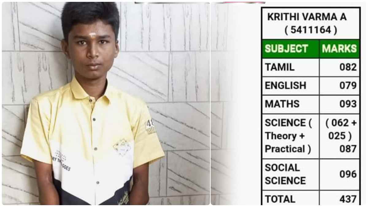 500க்கு 437 மதிப்பெண்கள் பெற்றுள்ள க்ரித்தி வர்மா, நெடுமருதி அரசு மேல்நிலைப்பள்ளியில் 10ஆம் வகுப்பில் முதலிடத்தை பிடித்திருக்கிறார்.