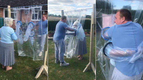 பிளாஸ்டிக் திரை ஒன்றை உருவாக்கி, பாட்டியை பேரன் பாசத்தோடு கட்டிப் பிடிக்கும் வீடியோ இணையத்தில் வைரலாகியுள்ளது.