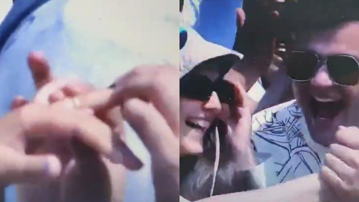 இந்த வேளையில் தான் கேமராவின் போக்கஸ் கூட்டத்துக்குள் திரும்பியது. அங்கு டீசர்ட் அணிந்திருந்து கண்களில் கண்ணாடி போட்டு இருந்த ஒருவர், ‛கூலிங்கிளாஸ்' தொப்பி அணிந்து ப்ரீஹேர் விட்டு இருந்த பெண்ணுக்கு மோதிரம் அணிந்து காதல் ‛ப்ரோபோஸ்' செய்தார். அதனை அந்த இளம்பெண் ஏற்று கொண்டார்.