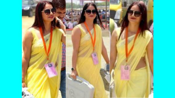 இவர் பெயர் ரீனா திவிவேதிதான்.. இவர் ஒரு அரசு ஊழியர், 35 வயதாகிறது.. இவரது சொந்த ஊர் தியோரியா... உபி மாநில பொதுப் பணித்துறையில் இளநிலை உதவியாளராக பணியாற்றுகிறார். அதனால், கடந்த 2019-ல் நடந்த தேர்தலின் வாக்குப்பதிவின்போது, வாக்குச்சாவடி ஒன்றில் இவர் பணியாற்ற நியமிக்கப்பட்டார்.. குறிப்பாக, உ.பியில் நடந்த 5வது கட்ட வாக்குப் பதிவின்போது தான் இவர் வெளி உலகுக்கு அறிமுகமானார்.. அன்றைக்குதான் இவர் மஞ்சள் கலர் சேலை அணிந்து வந்தார்..
