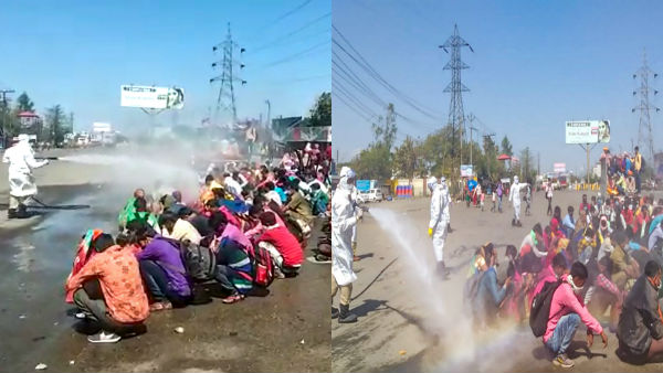புலம்பெயர்ந்த தொழிலாளர்கள் மீது கிருமிநாசினி தெளிக்கப்பட்டது