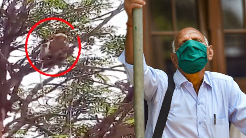 அப்போது அவர்களை தாக்கிய குரங்குகள் கூட்டம் அவர்களின் கையிலிருந்த ரத்த மாதிரிகளை பறித்து சென்றன. இதனால் அதிர்ச்சி அடைந்த பணியாளர்கள் சுதாரிப்பதற்குள் ரத்த மாதிரிகளை எடுத்துக் கொண்டு மரத்தின் உச்சிக்கு சென்றுவிட்டன. அந்த குரங்குகளில் ஒரு குரங்கு ரத்த மாதிரியை சுவை பார்த்துக் கொண்டிருந்தது.