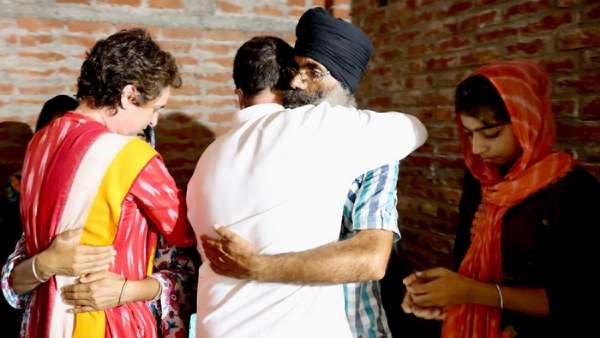 லவ் ப்ரீத் சிங்கின் அப்பாவை கட்டி அணைத்து ஆறுதல் கூறினார். அதன்பின் பிரியங்கா காந்தி கொல்லப்பட்டவரின் அம்மாவை கட்டியணைத்து கண்ணீருடன் ஆறுதல் கூறினார். உங்களுக்கு நாங்கள் உறுதுணையாக இருப்போம் என்று இருவரும் ஆறுதல் கூறினார்கள். பெரும் போராட்டம், கலவரம், மரணங்களுக்கு இடையே பிரியங்கா, ராகுலின் இந்த சந்திப்பு நெகிழ்ச்சி அளிக்க கூடியதாக அமைந்தது. அங்கு இருந்த விவசாயிகள் இந்த காட்சியை பார்த்து நெகிழ்ச்சி அடைந்தனர்.