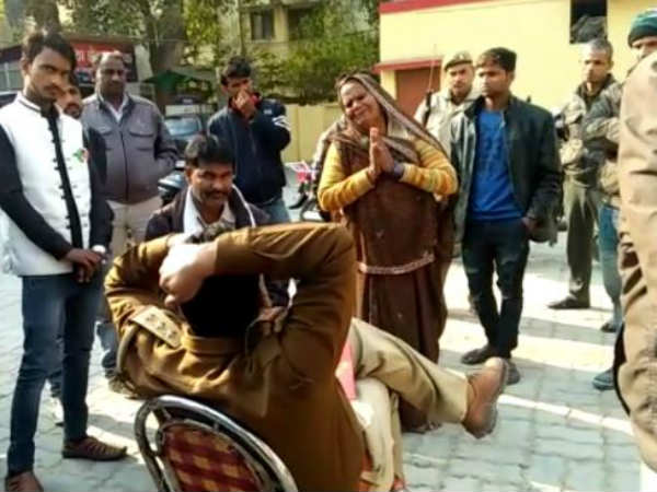 அப்போதும் மனமிரங்காமல் இன்ஸ்பெக்டர் அமர்ந்தபடியே உட்கார்ந்திருக்கிறார். ஆனால், அந்த வீடியோ சமூக வலைதளங்களில் வைரலாக பரவியது. இதையடுத்து உத்தரபிரதேச அரசு அந்த இன்ஸ்பெக்டரை ஆயுதப் படைக்கு இடமாற்றம் செய்துள்ளது.