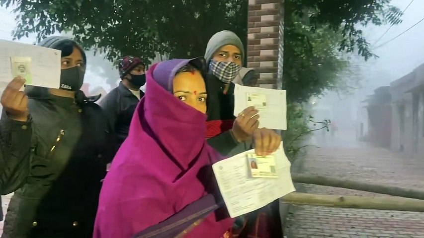 கடும் குளிர், நீண்ட வரிசை.. எதையும் பொருட்படுத்தாமல் உற்சாகமாக வாக்களிக்கும் உபி. மக்கள்!