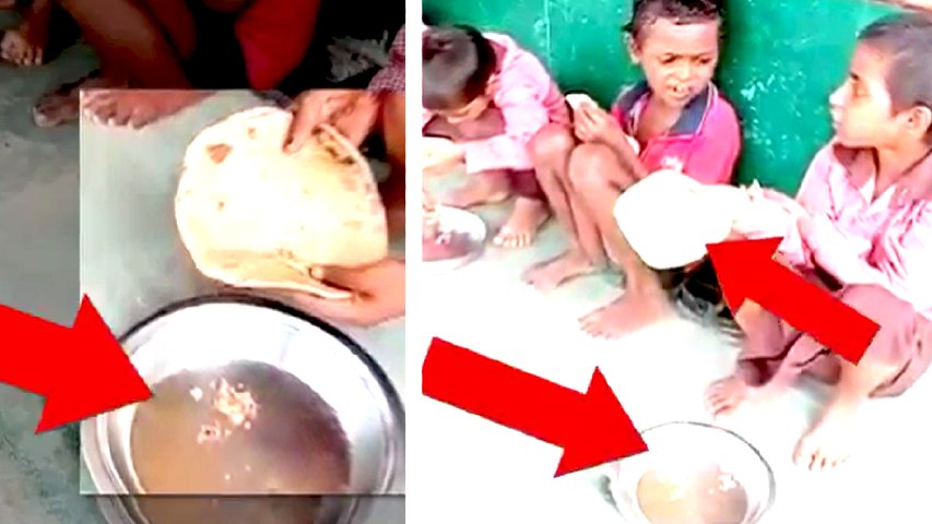 அதற்கு தொட்டுக் கொள்ள குருமா, சாம்பார், சட்டினி, பருப்பு ஆகியவற்றுக்கு பதில் வெறும் உப்பு வழங்கப்பட்டது. இதையும் அந்த ஏழை மாணவர்கள் வேறு வழியில்லாமல் சாப்பிட்ட அவலத்தை பத்திரிகையாளர் ஜெய்ஸ்வால் படம் பிடித்தார்.