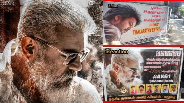 இப்படி ஒவ்வொரு நாளும் ஏதாவது ஒரு காரணத்தை கண்டுபிடித்து சண்டையிட்டுக் கொள்வதை ரசிகர்களின் வாடிக்கையாகி போனது. அந்த வகையில் தற்போது சமூக வலைதளங்களில் வெடித்து போஸ்டர் யுத்தத்தில் இறங்கி இருக்கிறார்கள் மதுரை ரசிகர்கள். நடிகர் அஜித்தின் துணிவு படத்தின் டைட்டில் வெளியான நிலையில் அதனை விமர்சிக்கும் வகையில் துணிவாக இருந்தாலும் யாராக இருந்தாலும் தளபதி எண்ட்ரி தான் ஃபர்ஸ்ட் என போஸ்டர் அடித்து இருந்தனர்.