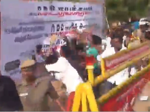 அதேசமயம், அந்தப் பகுதியில் அதிமுகவினரும் பேனர் வைத்திருந்தனர். இதைப் பார்த்த அமமுகவினர் ஆத்திரமடைந்து பேனர்களைக் கிழித்தெறிந்தனர். அத்தோடு நில்லாமல் அவற்றை தீவைத்தும் எரித்தனர். இதனால் பரபரப்பு ஏற்பட்டது. போலீஸார் தலையிட்டு அமமுகவினரை தடுத்தனர்.