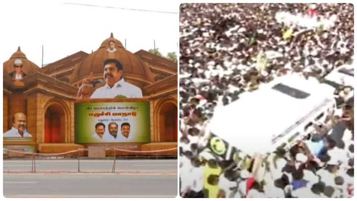 மதுரை வளையங்குளத்தில் சுமார் 60 ஏக்கரில் இந்த மாநாட்டுக்கான திடல் அமைக்கப்பட்டுள்ளது. கார், பஸ் பாரக்கிங் செய்யவும் தனியாக இடம் ஒதுக்கப்பட்டிருக்கிறது. ஏற்கெனவே மாநாட்டுக்காக நகருக்குள் நுழையும் பேருந்துகள் எந்த பாதையில் செல்ல வேண்டும் என்பது திட்டமிடப்பட்டிருக்கிறது. அதாவது, தென் மாவட்டங்களில் இருந்து தொண்டர்களை அழைத்து வரும் வாகனங்கள் காரியாபட்டி, வலையங்குளம் வழியாகவும், திருமங்கலம், கப்பலூர் விமான நிலைய சுற்றுச்சாலை வழியாகவும் மாநாட்டு திடலை வந்தடைய வேண்டும்.