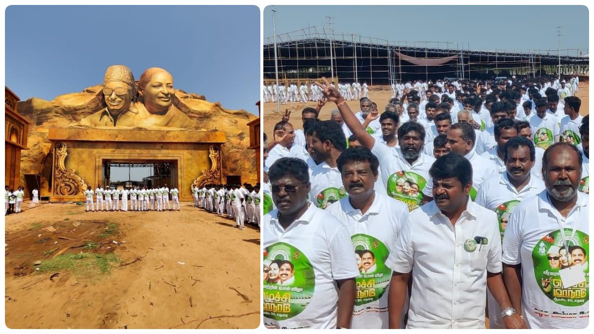 அதிமுக மாநாட்டினை பிரம்மாண்டமாக நடத்திக்காக நிர்வாகிகள் திட்டமிட்டுள்ளனர். 60,000 சதுர அடியில் மாநாட்டிற்கான மேடை அமைக்கும் பணி நடைபெற்று வருகிறது. ஒரு மாதத்திற்கும் மேலாக பணிகள் நடைபெற்று வருகிறது. மழை மற்றும் வெயிலினால் எவ்வித பாதிப்பும் ஏற்பட்டு விடாமல் ஒரு லட்சம் பேர் அமர்ந்து பார்க்கும் வகையில் மாநாட்டிற்காக தகர கொட்டகை அமைக்கப்பட்டுள்ளது.