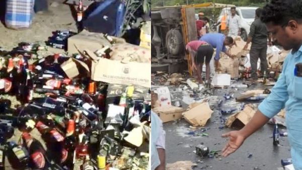 கையில் எவ்வளவு அள்ள முடியுமோ அந்த அளவுக்கு மதுபானங்களை அள்ளினார்கள்.. இதில் அவர்களுக்குள் தள்ளுமுள்ளுவும் ஏற்பட்டது.. நிறைய பாட்டில்கள் உடைந்து கொட்டி கொண்டிருந்ததால், உடையாத சரக்கு பாட்டில்களை தேடி தேடி எடுத்தனர். அந்த பாட்டில்களுக்குதான் நிறைய போட்டா போட்டி ஏற்பட்டது.. அதற்குள் அந்த பகுதி மக்களுக்கு தகவல் தெரிந்து அவர்களும் விரைந்து மெயின் ரோட்டுக்கு வந்துவிட்டனர்.. ஏற்கனவே விபத்து ஏற்பட்டு போக்குவரத்து ஜாம் ஆகியிருந்த நிலையில், குடிமகன்களின் அட்டகாசத்தினால் மேலும் போக்குவரத்து பாதிக்கப்பட்டது.