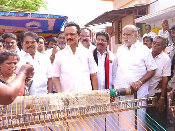 ஸ்டாலின் நெசவாளர்கள் மத்தியில் பேசியபோது சவுராஷ்டிரா மொழியில் வணக்கம் தெரிவித்து பேச்சைத் தொடங்கினார். அதனைக்கேட்ட தொண்டர்கள் கைகளை தட்டி ஆரவாரம் செய்தனர்.