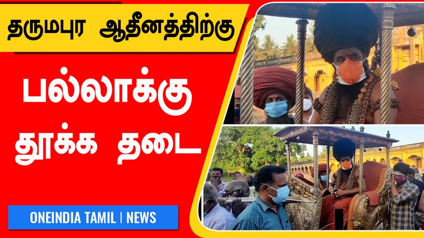 ஆதீனத்தை பல்லக்கில் தூக்கி செல்வதற்கு திராவிடர் கழகம் தொடர்ந்து எதிர்ப்பு தெரிவித்து வருகிறது. மனிதனை மனிதனே சுமப்பது மனித உரிமைக்கு எதிரானது என்று திராவிடர் கழகம் கூறி எதிர்ப்பு தெரிவித்து போராட்டம் நடத்த வாய்ப்பு உள்ளது என்பதாலும் இந்த நிலையில் சட்டம் ஒழுங்கு பிரச்சனை ஏற்படும் என்பதாலும் தருமபுரம் ஆதீனம் குருமகாசன்னிதானத்தை பல்லக்கில் அமர வைத்து தூக்கி செல்வதற்கு தடை விதித்து மயிலாடுதுறை கோட்டாட்சியர் பாலாஜி உத்தரவிட்டுள்ளார்.
