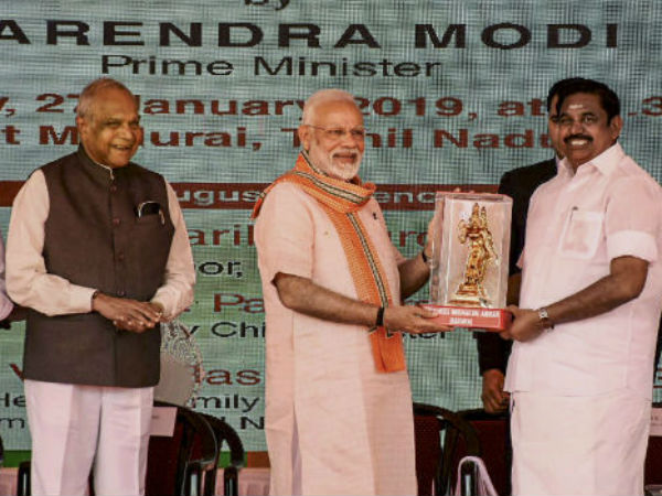 எய்ம்ஸ் மருத்துவமனைக்கான அடிக்கல் நாட்டு விழா மதுரை மண்டேலா நகரில் இன்று நடைபெற்றது. இதில் கலந்து கொள்ள பிரதமர் நரேந்திர மோடி மதுரைக்கு வந்தார்.