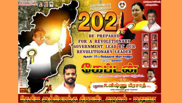 இந்த நிலையில் நாளை பிறந்த நாள் கொண்டாடும் விஜயகாந்திற்கு வாழ்த்து தெரிவிக்கும் விதமாக மாணவர்களின் சார்பாக வருகிற சட்டமன்ற தேர்தலை எதிர்நோக்கி உள்ள நிலையில் அவருக்கு பிரம்மாண்டமான போஸ்டர் ஒட்டப்பட்டுள்ளது. இதை மாநில மாணவரணி துணைச் செயலாளர் புதுவை R விஷ்ணு பிரசாத் வடிவமைத்துள்ளார். அந்த போஸ்டர் பெரியார், சிம்மக்கல், தத்தனேரி, தங்கரீகல் தியேட்டர் அருகில், மாட்டுத்தாவணி கலெக்டர் ஆபீஸ், கோரிப்பாளையம் என பல இடங்களில் ஒட்டப்பட்டுள்ளன.