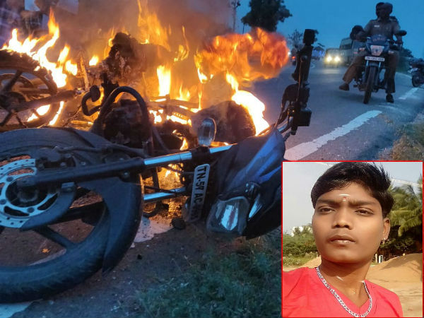 அதிர்ந்தது மதுரை.. வாலிபரை மடக்கி வெட்டிக் கொன்று.. பைக்கோடு எரித்த கும்பல்!