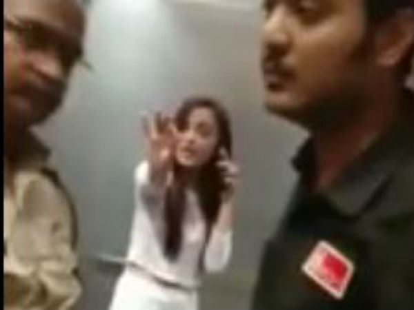 இதை பார்த்ததும் போலீசார் பெண்ணை தங்களுடன ஸ்டேஷனுக்கு வருமாறு கூப்பிட்டார்கள். ஆனால் அழகியோ, "உங்களுடன் ஒரு பெண் போலீசும் இல்லை, இப்பவே மணி 3 ஆகிவிட்டது. உங்களுடன் வரமாட்டேன்" என்றுசொல்லி தகராறில் ஈடுபட்டார். போலீசார் எவ்வளவு வற்புறுத்தும் அவர்களுடன் செல்லாமல் தன் மாடியில் உள்ள தன் வீட்டுக்கு செல்ல முயன்றார். ஆனால் போலீசார் அவரை செல்ல அனுமதிக்காமல் உடனே கூடவரும்படி வற்புறுத்தினார்கள். ஏற்கனவே கோபமும், போதையும் கலந்து கிடந்த அழகி, ஓடிப்போய் லிப்ட் பக்கத்தில் நின்று கொண்டு திடீரென தன் ஆடைகளை கழற்ற ஆரம்பித்தார்.