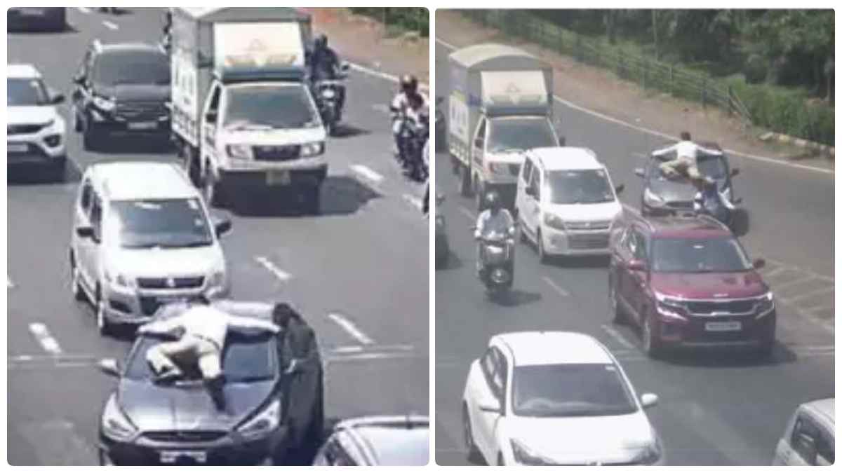 சாலைக்கே சென்று காரை ஓரம் கட்டுமாறு காரை ஓட்டி வந்தவரை பார்த்து சைகை செய்தார். ஆனால், கொஞ்சம் கூட வேகத்தை குறைக்காமல் அந்த கார் மின்னல் வேகத்தில் வந்து கொண்டிருந்தது. காவலர் சித்தேஷ்வர் மாலி மீது மோதுவது போல கார் வந்தது. இதனால் பதறிப்போன அந்த காவலர் சாதுர்யமாக கார் பேனட்டில் ஜம்ப் செய்து தொங்கிக் கொண்டார்.
