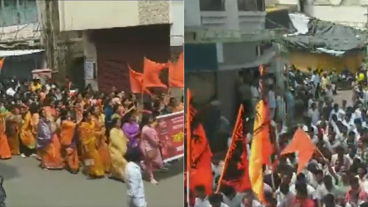 #WATCH | Baramati (Maharashtra): People hold protest over the demand for Maratha reservation. pic.twitter.com/jbqeRmiM06