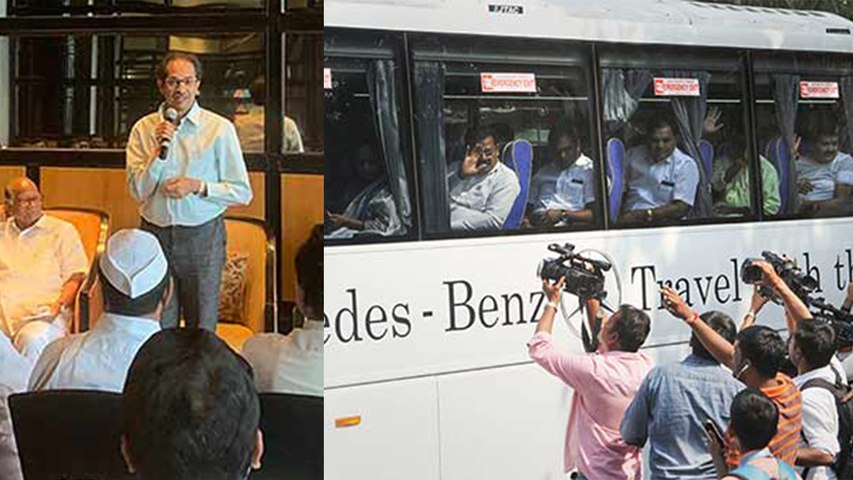 இன்று மும்பையில் சிவசேனா - தேசியவாத காங்கிரஸ் - காங்கிரஸ் எம்எல்ஏக்கள் அணிவகுப்பு நடத்தினார்கள். மொத்தம் 162 எம்எல்ஏக்கள் ஒன்றாக சேர்ந்து மக்கள் முன்னிலையில், செய்தியாளர்கள் முன்னிலையில் தோன்றி அணிவகுப்பு நடத்தினார்கள்.