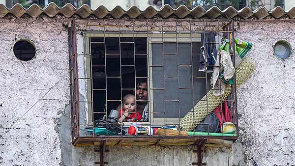 கொரோனாவால் பதற்றத்தில் உள்ள தாராவி குடியிருப்புவாசிகள், முகமூடிகளுக்குப் பதிலாக கைக்குட்டை அல்லது சட்டைக்காலரை வெட்டி முகத்தில் கட்டியுள்ளனர். சிலர் வண்டிகள், மிதிவண்டிகள் மற்றும் கம்புகளை பயன்படுத்தி சந்து பாதைகளை தடை செய்துள்ளனர். அறிகுறிகள் வெளியாட்களை விலகி இருக்க வேண்டும் என்று எச்சரிக்கிறார்கள். இருப்பினும், பல குடியிருப்பாளர்கள் சிறிய அறைகளில் தங்களை நீண்ட நாள் அடைத்து வைக்க முடியாது என்று கூறுகிறார்கள். வெவ்வேறு ஷிப்டுகளில் பணிபுரியும் தொழிலாளர்களால் அந்த அறைகள் பகிரப்படுகின்றன. இப்போது லாக்டவுனால் எல்லோரும் ஒரே இடத்தில் முடங்கி கிடக்கிறார்கள். .