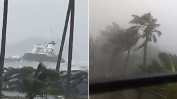 நடுங்க வைக்கும் நிசர்கா புயலில் சிக்கி.. ஆட்டம் கண்ட கப்பல்!.. ரப்பர் போல் வளைந்த தென்னை மரங்கள்
