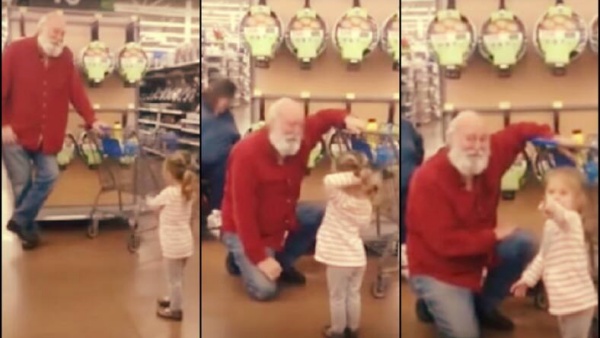 ஒவ்வொரு கிறிஸ்துமஸ் தினத்தன்றும் சான்டா கிளாஸ் வந்து நாம் விரும்பும் பரிசுகளை கொடுத்துவிட்டு போவார் என்று குழந்தைகள் கிறிஸ்துமஸை எதிர்பார்த்து காத்திருப்பார்கள். இந்நிலையில் அமெரிக்காவில் கடை ஒன்றில் சிவப்பு நிற சட்டை அணிந்த வெள்ளை நிற தாடி கொண்ட முதியவரை சிறுமி ஒருவர் வைத்த கண் வாங்காமல் பார்த்துக்கொண்டே இருந்திருக்கிறார். முதலில் அந்த முதியவர் இதனை கவனிக்கவில்லை.
