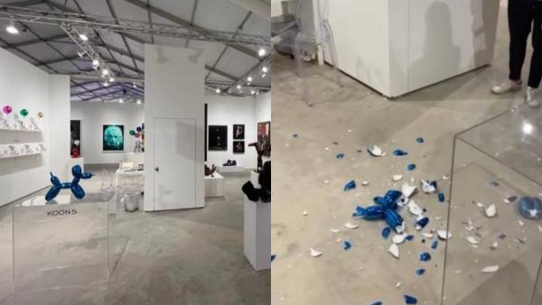அப்பெண்ணும் 'வட போச்சே' என்கிற பாணியில் நின்றுக்கொண்டிருக்க உடைந்த பொருளை ஊழியர்கள் சேகரித்துள்ளனர். அப்பெண் அவர்களுக்கு உதவி செய்ய முயற்சிக்கையில், 'செஞ்சதே போதும் தாயி' என ஊழியர்கள் அவரை கண்காட்சியிலிருந்து வெளியேற்றியுள்ளனர். இது குறித்து ஊழியர் ஒருவர் கூறுகையில், "இப்பெண்மணி ஜெஃப் கூன்ஸின் 'பலூன் நாய்' எனும் பொருளை உடைத்துள்ளார். இது மிகவும் பேமஸான ஒரு கலை படைப்பு. இதன் விலை ரூ.34 லட்சம். ஆனால் என்ன செய்வது அவரை எங்களால் எதுவும் கேட்க முடியாது. ஏனெனில் கண்காட்சியில் உள்ள பொருட்களை நாங்கள்தான் பத்திரமாக பார்த்துக்கொள்ள வேண்டும்" என்று கூறியுள்ளார்.