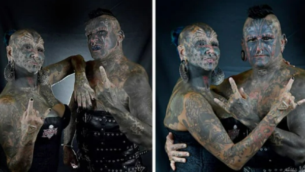 அடுத்த சாதனை நம்மை கொஞ்சும் பயமுறுத்தும் வகையில் இருக்கும். அதாவது உலகிலேயே அதிக உடல் மாற்றங்களை செய்த தம்பதியினர்தான் இந்த கின்னஸ் சாதனையை படைத்திருக்கிறார்கள். இவர்கள் அப்படி என்ன மாற்றத்தை செய்திருக்கிறார்கள் என்று கேட்கிறீர்களா? இவர்கள் இருவரும் சேர்ந்து தலா 98 டாட்டுக்களை தங்கள் உடலில் குத்தியுள்ளார்கள். மட்டுமல்லாது 50 இடங்களில் உடலில் துளையிட்டு அணிகலன்களை அணிந்திருக்கிறார்கள். இதேபோல 8 இடங்களில் கம்மல்களையும் குத்திக்கொண்டுள்ளனர். இது தவிர இவர்களது உடலில் 14 இடங்களில் செயற்கையாக பொருட்கள் உள்வைக்கப்பட்டுள்ளன.
