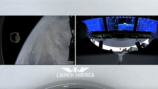 தற்போது இதில் மீதம் இருக்கும் க்ரூ டிராகன் (Crew Dragon) பகுதி ஸ்பேஸ் ஸ்டேசனை நோக்கி கொஞ்சம் கொஞ்சமாக செல்கிறது. இதில்தான் இரண்டு நாசா வீரர்களும் இருக்கிறார்கள். இந்த க்ரூ டிராகன் (Crew Dragon) கழன்று கொண்ட பின் லேசாக மிதந்து கொண்டு இருக்கிறது. இது மொத்தம் 19 மணி நேரம் பூமியை சுற்றும்.
