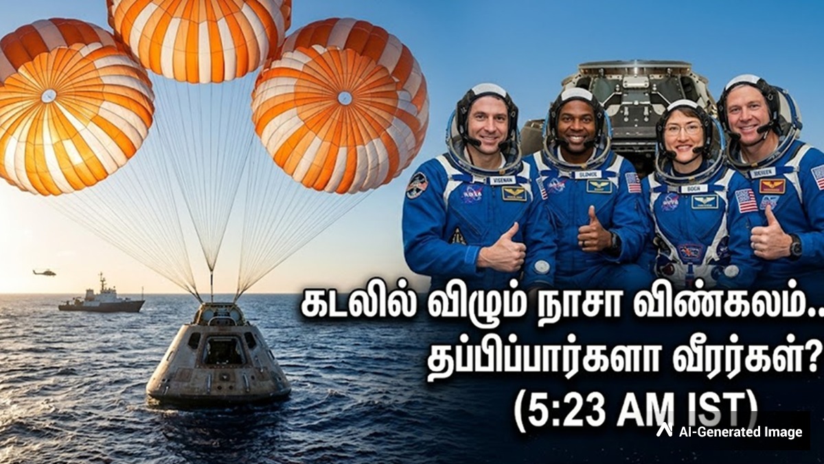 உலகமே எதிர்பார்க்கும் 5:23 மணி.. கடலில் விழும் நாசா விண்கலம்; 14 நிமிடத்தில் தப்பிப்பார்களா வீரர்கள்