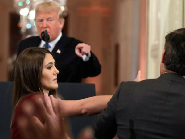அமெரிக்க அதிபர் டிரம்ப் நடத்திய செய்தியாளர் சந்திப்பில்தான் அந்த சம்பவம் நடந்தது. அவரிடம் சிஎன்என் நிரூபர் ஜிம் அகோஸ்டா நிறைய கேள்விகளை கேட்டார். அமெரிக்காவில் குடியேறும் மெக்சிகோ மக்கள் பற்றியும், அமெரிக்க தேர்தலில் ரஷ்யாவின் தலையீடும் பற்றியும் கேட்டார். ஆனால் டிரம்ப் அதற்கு பதில் அளிக்காமல், அவரை அமரும்படி கோபமாக பேசினார்.