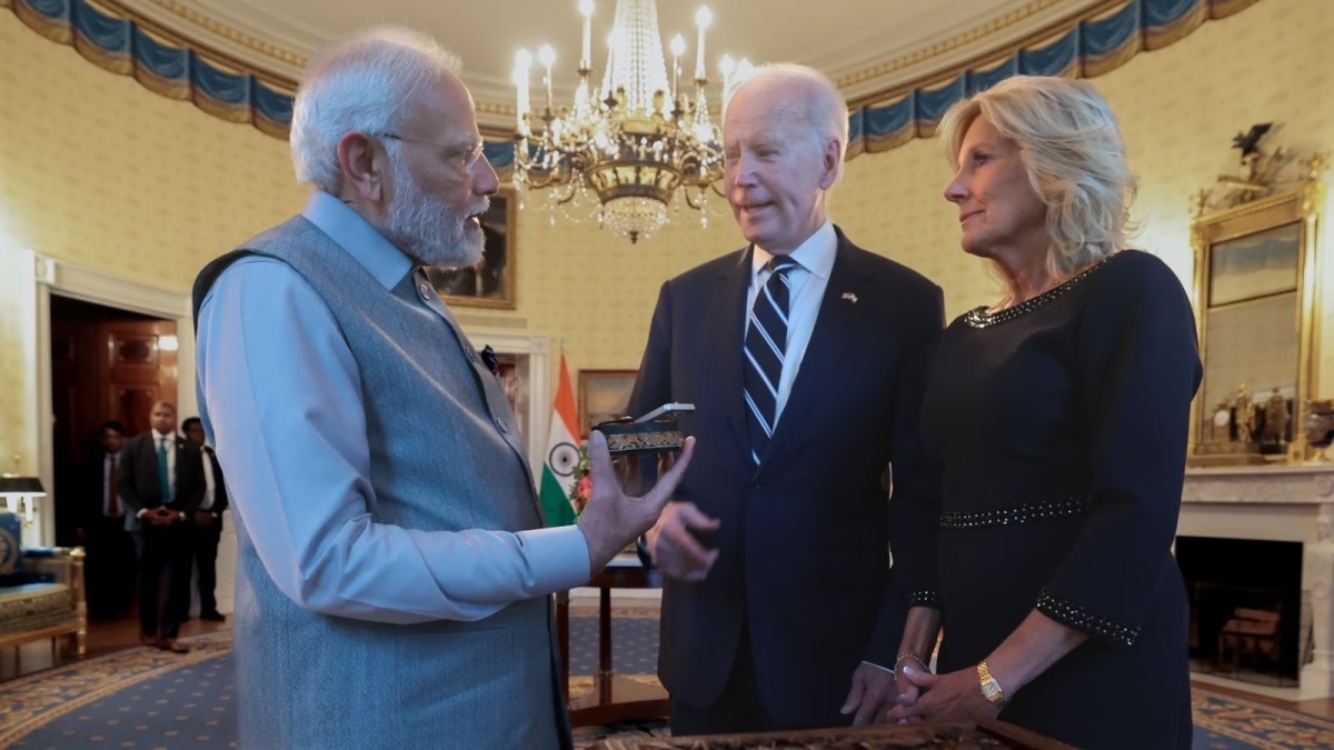 அமெரிக்கா சென்ற பிரதமர் மோடிக்கு அங்கு பிரம்மாண்ட வரவேற்பு கொடுக்கப்பட்டது. முக்கியமாக பிரதமர் நரேந்திர மோடிக்கு இன்று அமெரிக்க அதிபர் ஜோ பிடன் மற்றும் அவரின் மனைவி, ஜில் பிடன் ஆகியோர் வெள்ளை மாளிகையில் தனிப்பட்ட விருந்து அளித்தனர்.