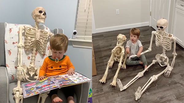 “நீதான் என் உயிர்த்தோழன்”.. 24 மணி நேரமும் எலும்புக்கூடுடன் சுற்றும் 2 வயது குட்டிப்பையன்!