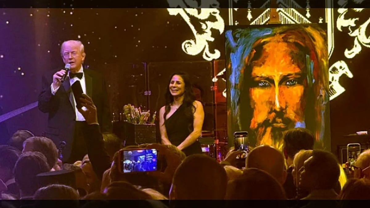 இந்த விருந்தில் பிரபல கிறிஸ்தவ ஆன்மீக ஓவியர் வெனெசா ஹோரபியூனா பங்கேற்று இருந்தார்.. அப்போது அவர் அனைவர் முன்னிலையிலும் இயேசு கிறிஸ்துவின் ஓவியத்தை அச்சு அசலாக வரைந்தார்...
