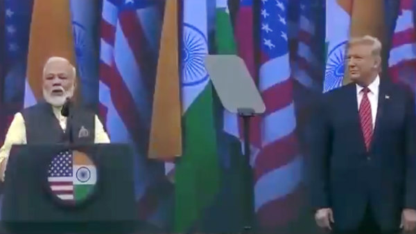 அந்த வீடியோவில் வரும் இன்னொரு காட்சியில் டிரம்ப் ''அமெரிக்கா லவ்ஸ் இந்தியா'' என்று குறிப்பிட்டு இருப்பார். இந்தியாவை நாங்கள் மதிக்கிறோம். இந்தியாவின் உறவு எங்களுக்கு முக்கியம். இந்தியர்களின் உறவு எங்களுக்கு முக்கியம். இந்தியாவின் நம்பிக்கையான, அன்பான நெருங்கிய நண்பனாக எப்போதும் அமெரிக்கா இருக்கும் என்று டிரம்ப் குறிப்பிட்டு இருந்தார். டிரம்ப் இப்படி இந்தியாவை புகழும் காட்சிகளும்.. மோடி டிரம்ப் கட்டிப்பிடிக்கும் காட்சிகளும் இதில் இடம்பெற்று இருந்தது.