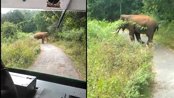என்னை தாண்டி போய்டுவீங்களா.. பஸ்சை வழிமறித்த யானை.. 2 மணி நேரம் ஸ்தம்பித்த பயணிகள்!