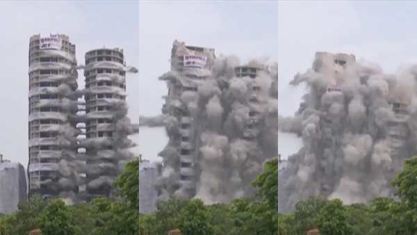 நொய்டா: நொய்டாவில் இருக்கும் இரட்டை கோபுர கட்டிடம் இன்று தகர்க்கப்பட்டது. இதன் காரணமாக அருகில் இருந்த அடுக்குமாடி குடியிருப்புகளில் மிகப்பெரிய அளவிற்கு புகை பரவியது.