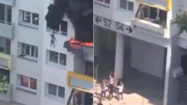 ஆனால் தீப்பிடித்த வீட்டில் இருந்து எப்படியும் தப்பித்தே ஆக வேண்டும் என போராடி, துணிச்சலாக மூன்றாவது மாடியில் இருந்து கீழே குதித்த அந்த சிறுவர்களின் துணிச்சலையும், அவர்களுக்கு காயம் ஏதும் ஏற்படாமல் சரியாக கீழே இருந்து பிடித்தவர்களையும் அப்பகுதி மக்கள் பாராட்டி வருகின்றனர்.