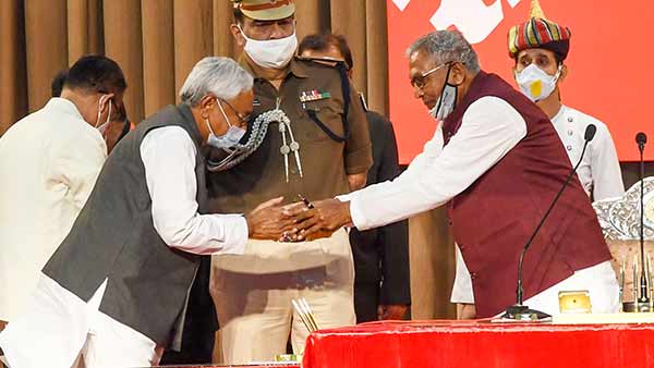 பீகார் சட்டசபை தேர்தலில் வெற்றிபெற்ற பாஜக - ஐக்கிய ஜனதா தளம் கட்சிகளின் தேசிய ஜனநாயக கூட்டணி இன்று மீண்டும் பீகாரில் ஆட்சி அமைத்துள்ளது. பீகாரின் முதல்வராக ஐக்கிய ஜனதா தளம் கட்சியின் நிதிஷ் குமார் மீண்டும் பதவி ஏற்றுள்ளார்.
