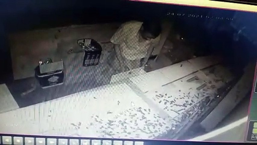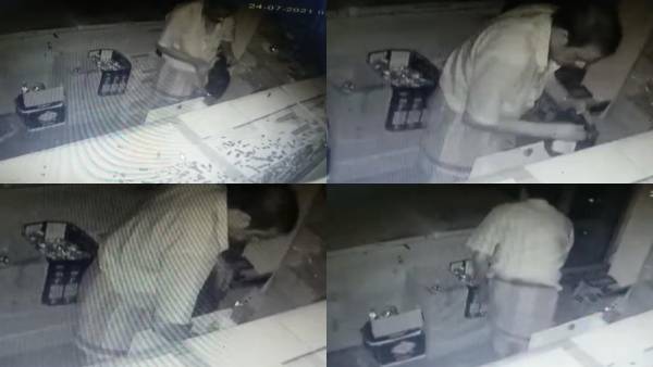 சிசிடிவி கேமராவை பற்றி கவலைப்படாமல் முகத்திற்கு மாஸ்கு கூட அணியாமல் சர்வசாதாரணமாக பாலத்தீன் கவரை தேடி எடுத்து பணத்தை அள்ளிப்போட்டு செல்கிறார் அந்த கொள்யைன். இந்த விடியோ வைரலாகி வருகிறது.